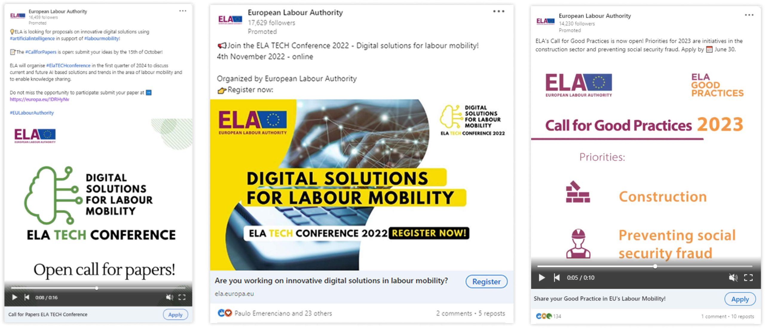 We delivered 15 additional pan-EU social media advertising campaigns on Facebook, Twitter / X, LinkedIn and Google Ads (YouTube, Search, Display Ads) promoting ELA’s projects initiatives and events.